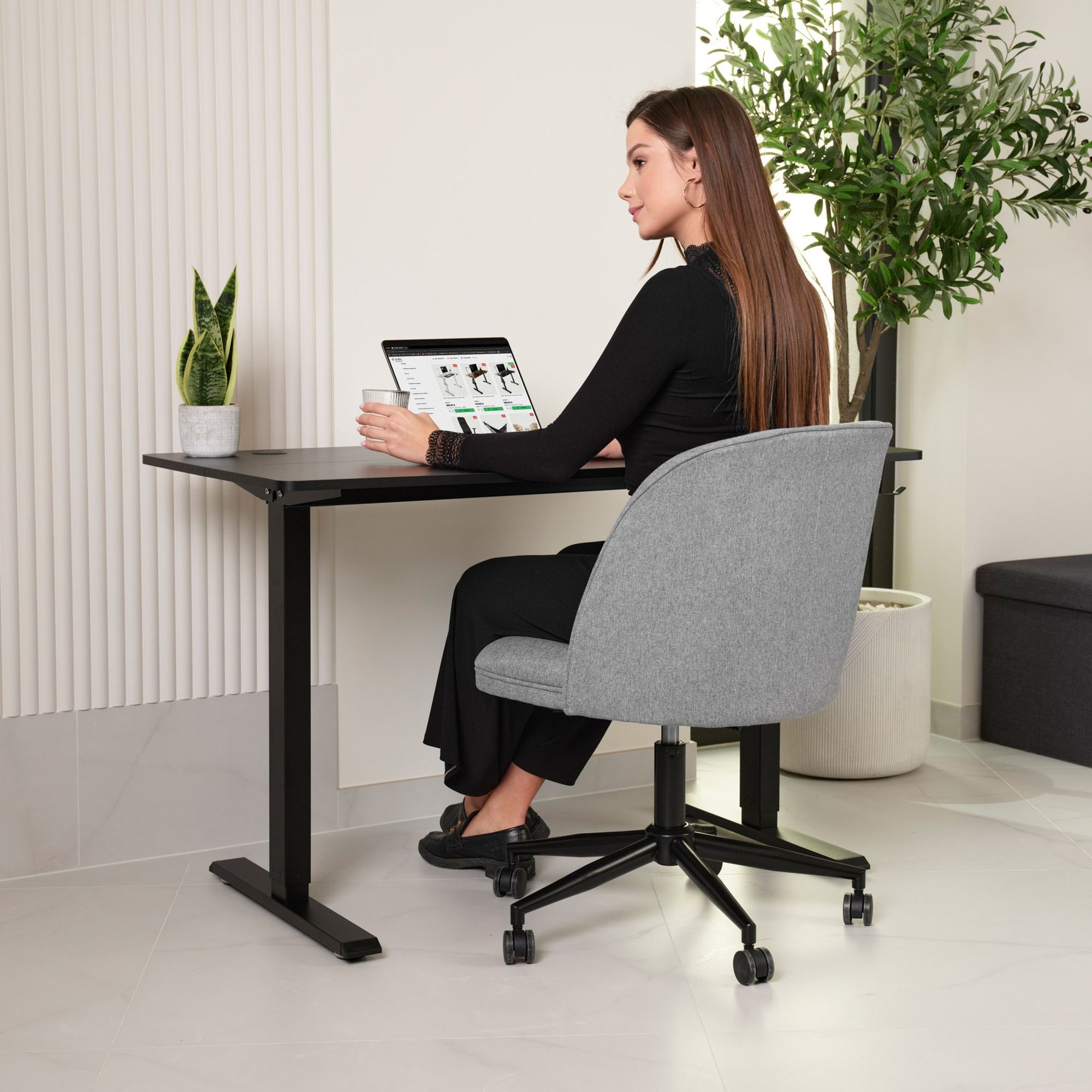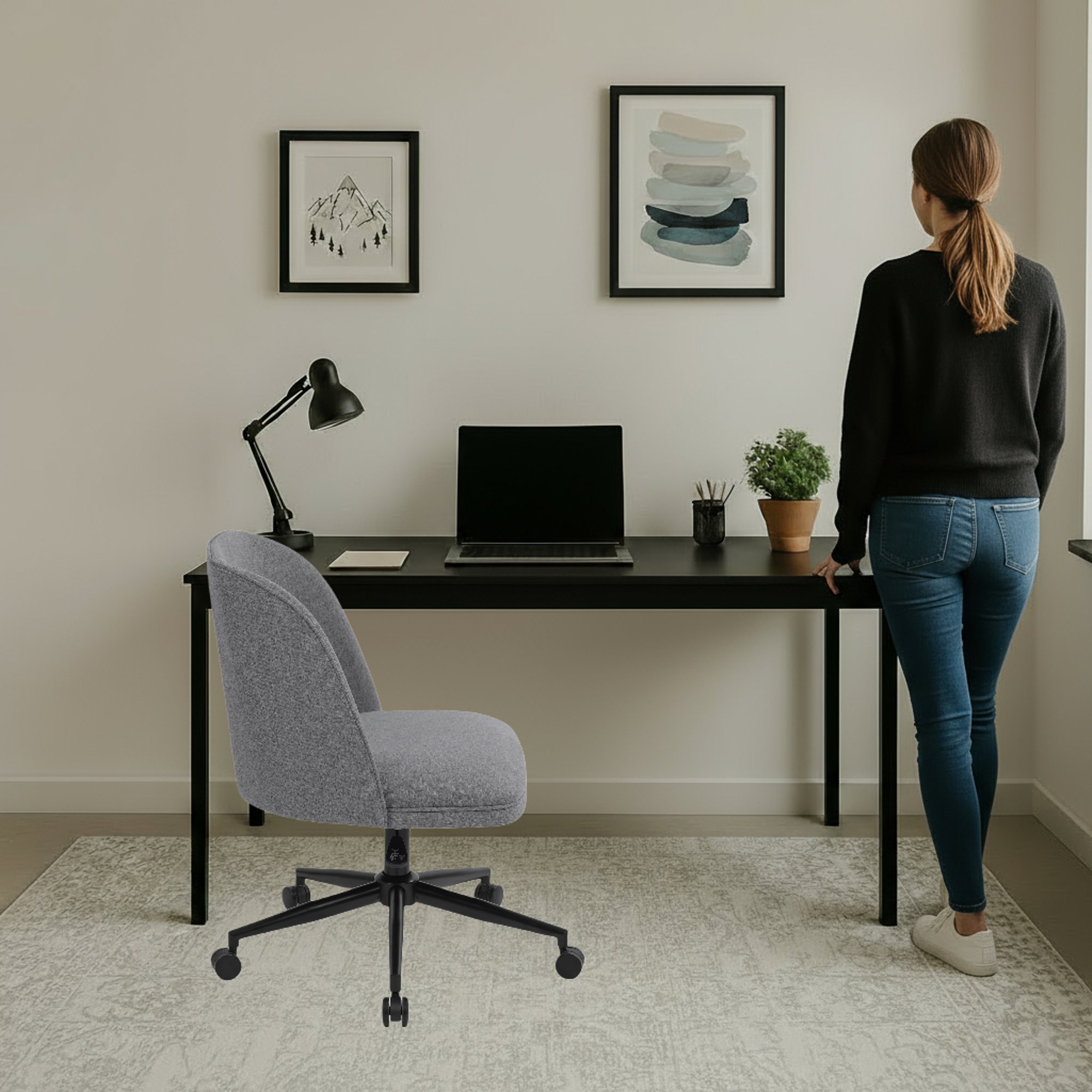 Fano łączy w sobie elegancję, wygodę i funkcjonalność. To fotel biurowy obrotowy, który doskonale wpisuje się w każde wnętrze – od domowego gabinetu po stylowy salon. Szara tapicerka nadaje mu lekkości. Siedzisko i oparcie z pianki wysokiej gęstości zapewniają komfort przez wiele godzin, wspierając naturalną postawę ciała. Solidna metalowa podstawa i ciche kółka obracające się o 360° gwarantują stabilność, trwałość i płynny ruch.