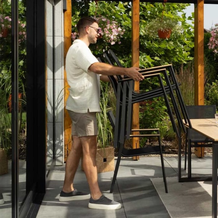 Krzesła dają możliwość sztaplowania, czyli układania jednego na drugim. To praktyczne rozwiązanie znacznie ułatwia przechowywanie mebli ogrodowych na co dzień i podczas sezonu zimowego. Sztaplowanie pozwala na zaoszczędzenie cennej przestrzeni, a także przyspiesza sprzątanie ogrodu lub tarasu po zakończonym spotkaniu.