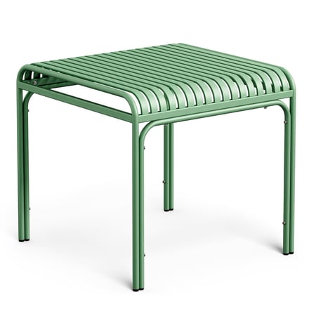 Kwadratowy stół ogrodowy Liwio zielony. Metalowy blat odprowadza wodę, konstrukcja stabilna i odporna na UV. Idealny na taras i balkon.