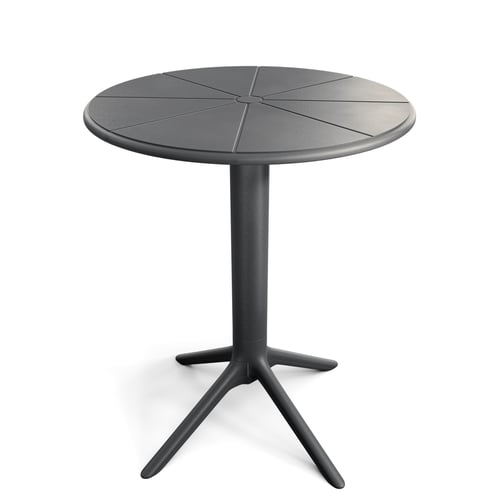 Stolik kawowy ogrodowy Dego opiera się na solidnej, pojedynczej nodze zakończonej trójramiennym stelażem. Stelaż stabilizuje konstrukcję nawet na nierównym podłożu – trawie, kostce brukowej czy panelach tarasowych. Dodatkowo 4 stopki poziomujące pozwalają idealnie wypoziomować stolik. Średnica 60 cm i wysokość 76 cm tworzą wygodną przestrzeń dla dwóch osób, idealną na poranną kawę czy wieczorny relaks. Blat zdobi subtelny, promienisty wzór przypominający plaster cytrusa, który dodaje lekkości i nowoczesnego charakteru. To stolik ogrodowy okrągły, który łączy funkcję praktyczną z atrakcyjnym designem.