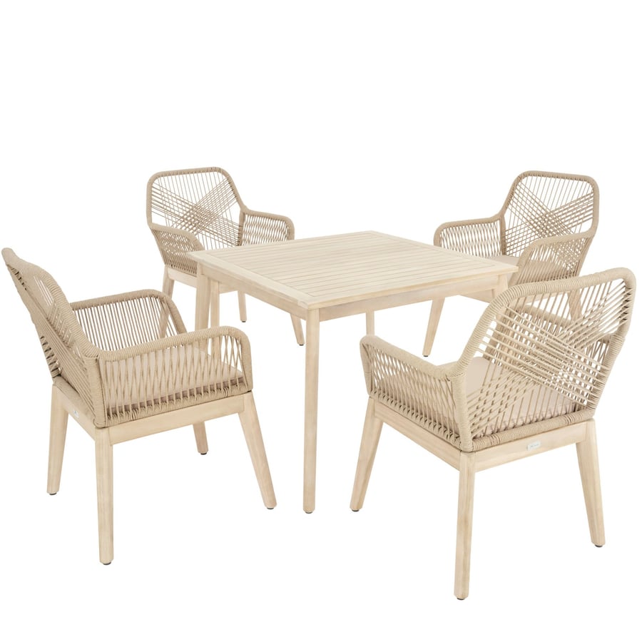W przeciwieństwie do tradycyjnych stolików kawowych, stół w zestawie mebli Tarato ma wysokość 70 cm, co pozwala na wygodne spożywanie posiłków na świeżym powietrzu. Jego prostokątny blat o wymiarach 100 × 95 cm oferuje wystarczającą ilość miejsca dla czterech osób, a naturalne drewno akacjowe dodaje mu wyjątkowego charakteru.